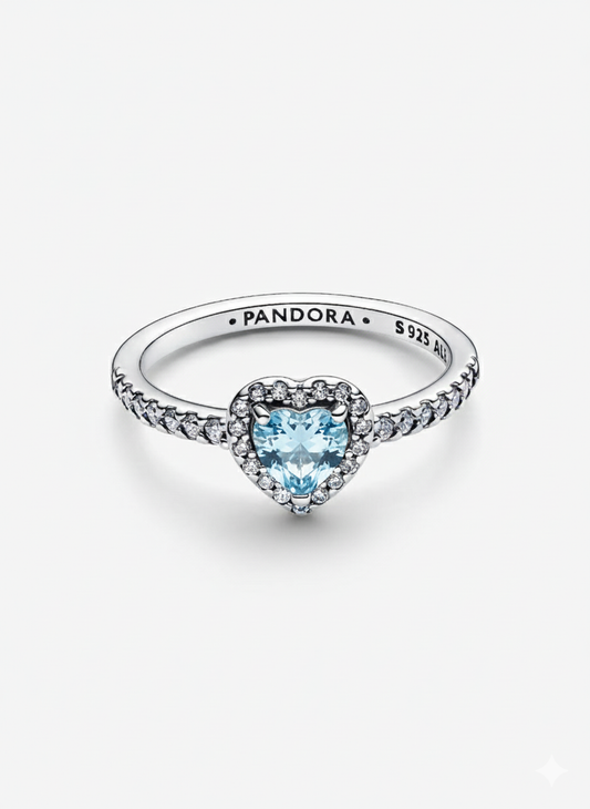 Anillo Pandora Corazón Azul Celeste Brillante