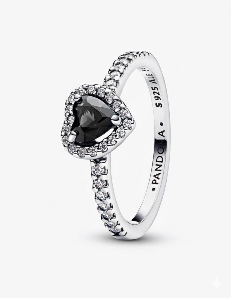 Anillo Pandora Corazón Negro Brillante
