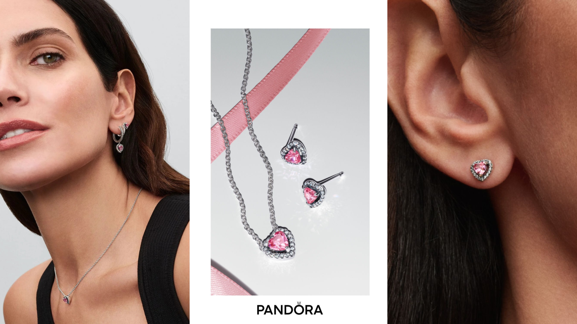 Argollas Pandora De Aro Corazón Rosa Halo Brillante