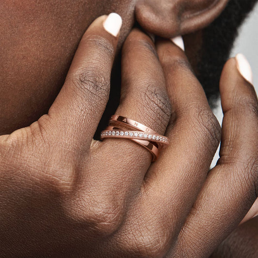 Anillo Cruzado Triple Alianza en Pavé Rose Gold