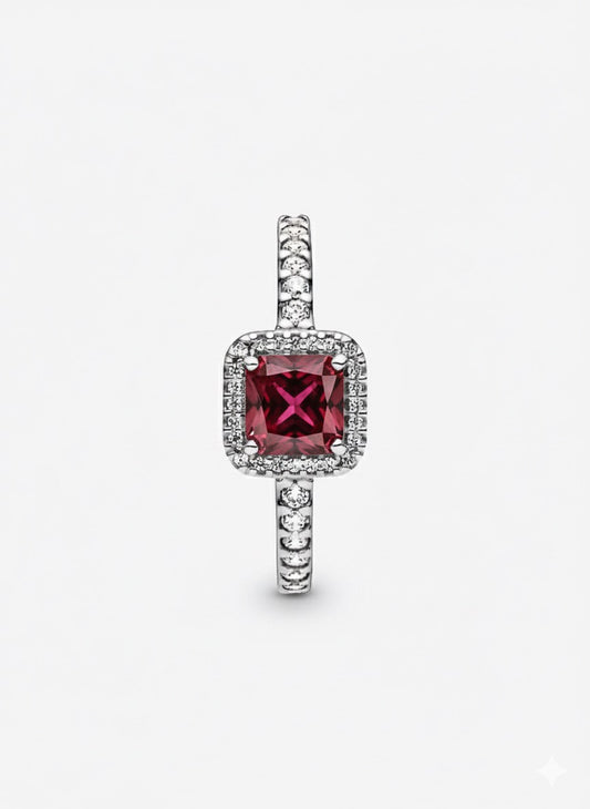 Anillo Pandora Cuadrado Rojo Elegante Atemporal