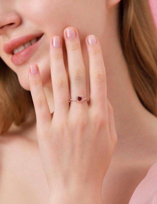 Anillo Pandora Corazón Rojo Brillante en Rose Gold