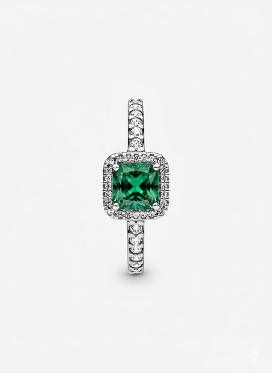 Anillo Pandora Cuadrado Verde Elegante Atemporal