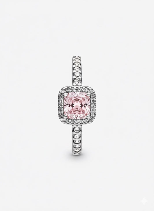 Anillo Pandora Cuadrado Rosa Elegante Atemporal