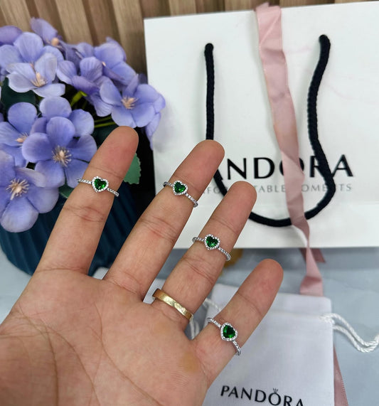 Anillo Pandora Corazón Verde Brillante