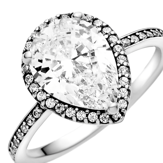 Anillo Pandora Halo de Lágrima Brillante Rose Gold