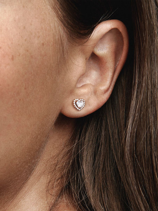 Argollas Pandora De Aro Corazón Rosa Halo Brillante