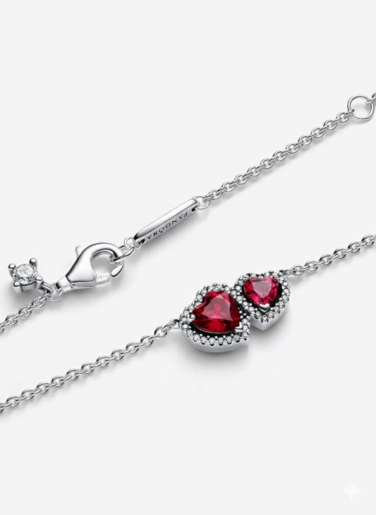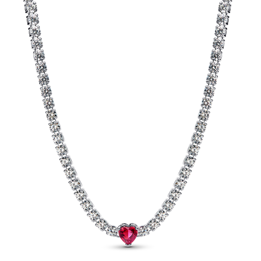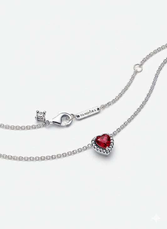 Collar Pandora con Colgante Halo y Corazón Rojo Brillante
