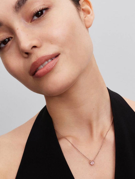 Collar Pandora con Colgante Halo y Corazón Rosa Brillante