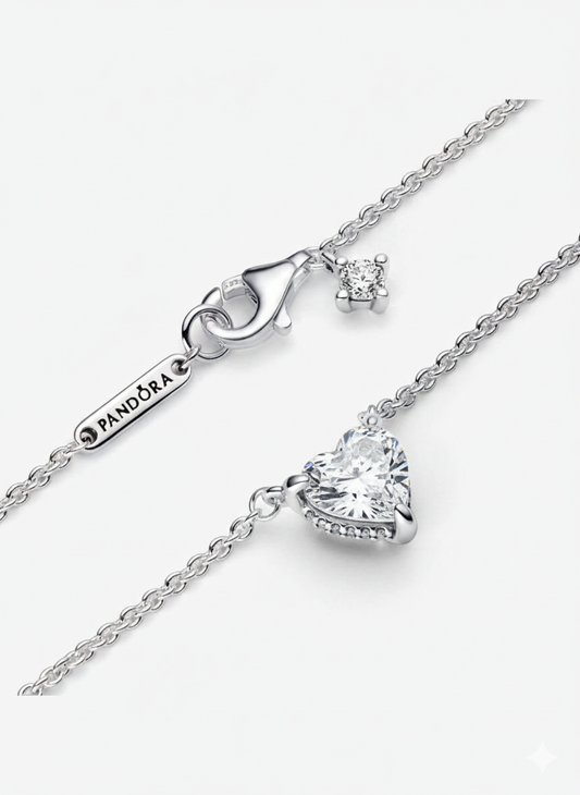 Collar Pandora con Colgante Halo y Corazón Blanco Brillante