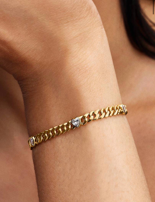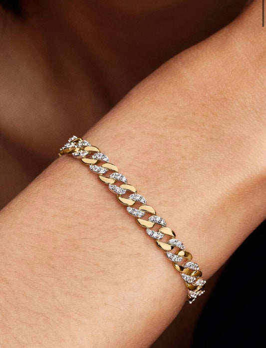 Pulsera Pandora Cadena Cubana en Pavé Dorada