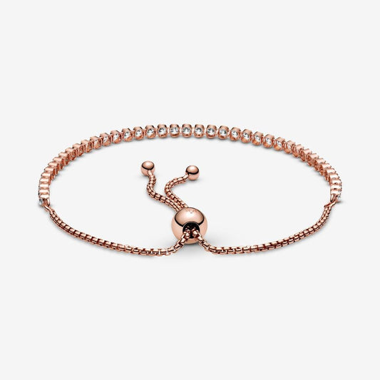 Pulsera Pandora Rosa y Transparente Brillante Con Cierre Deslizante