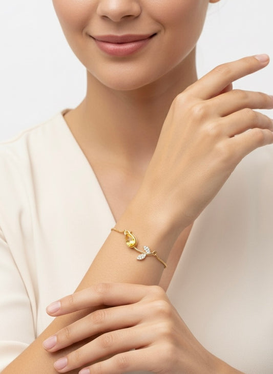 Pulsera Ajustable De Tulipán Con Zirconia Amarilla