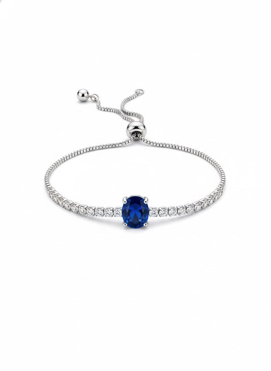 Brazalete De Tenis Con Zirconia Azul Ajustable