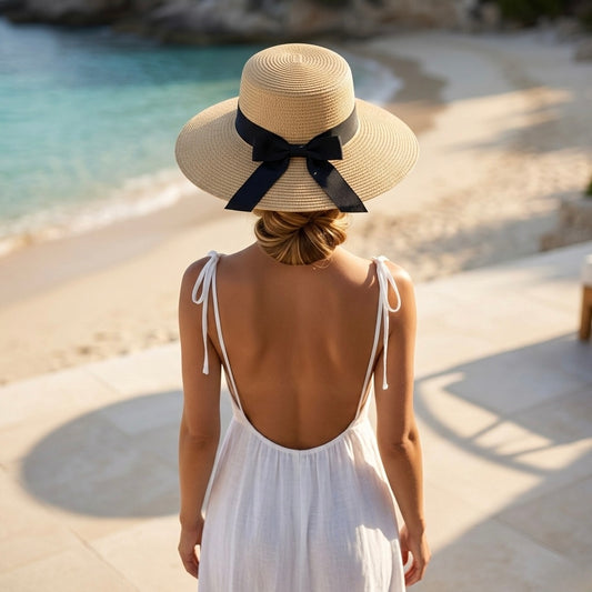 Sombrero Playero Mediano Claro con Cinta Negra