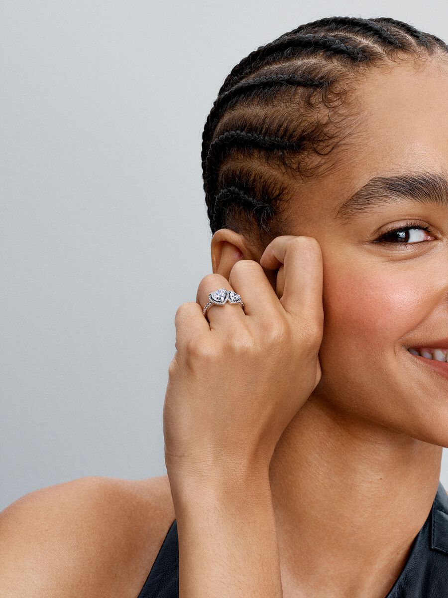 Anillo Pandora Halo Corazones Blanco