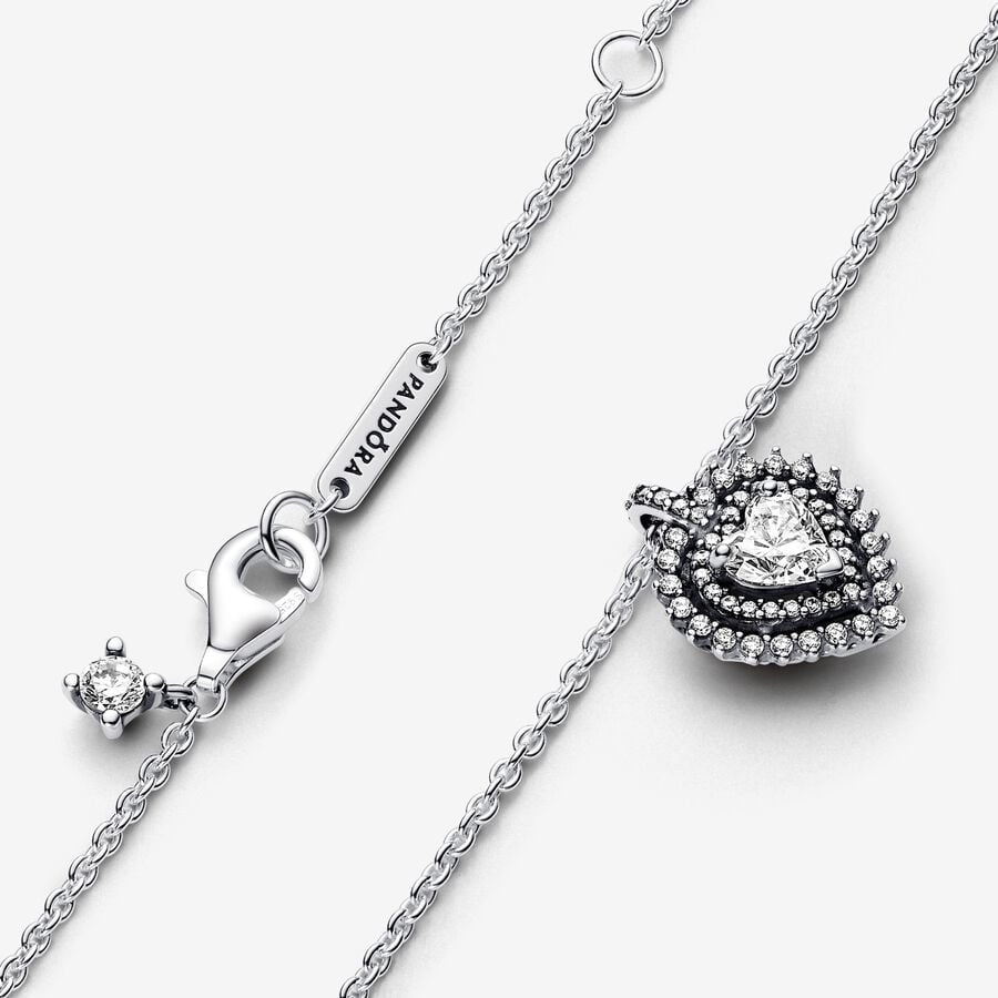 Collar Pandora con colgante de halo de corazón brillante