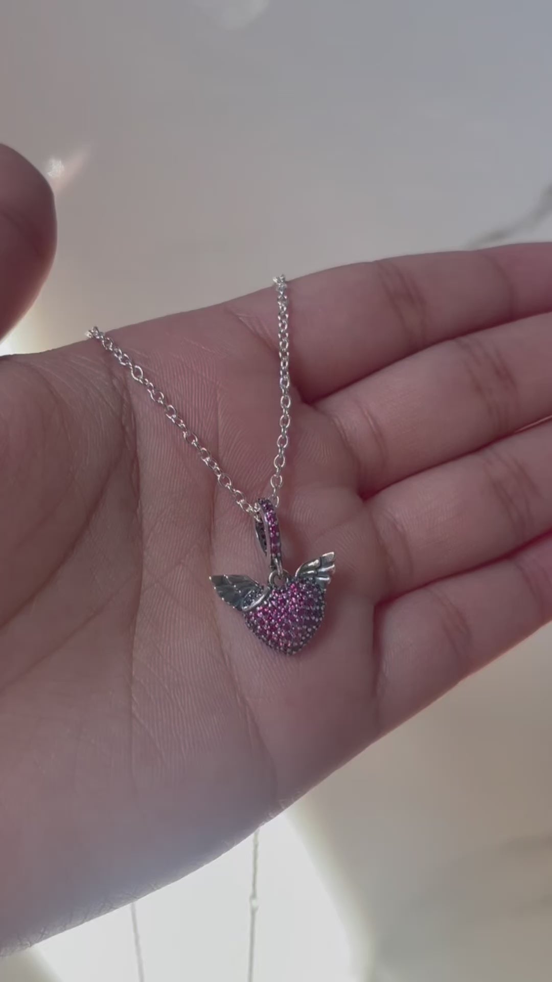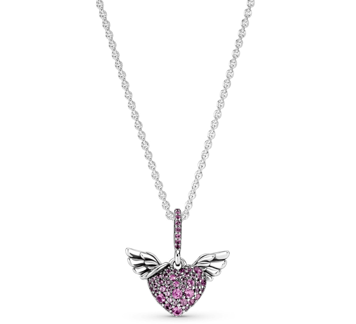 Collar Pandora corazón en Pavé alas del ángel rosa
