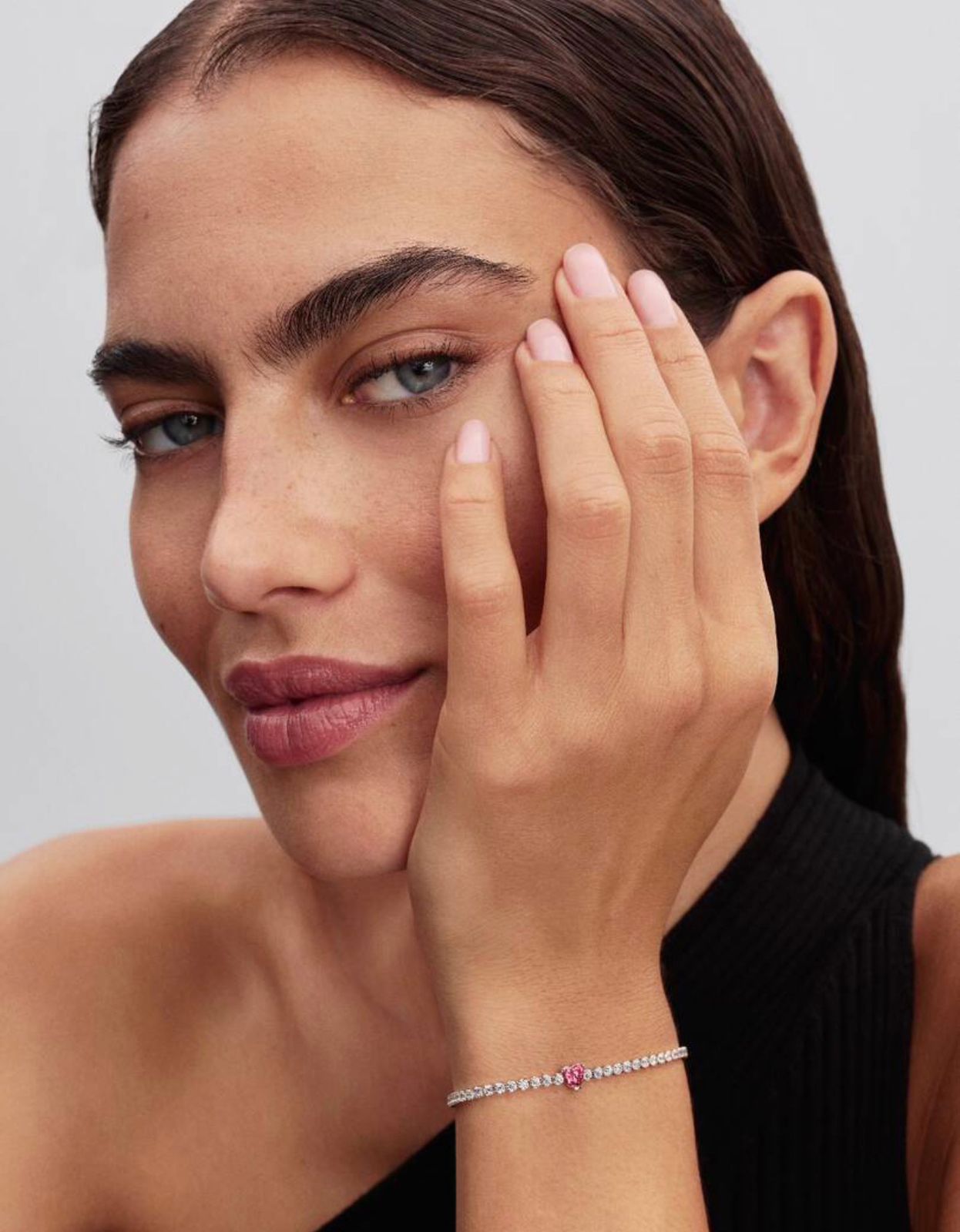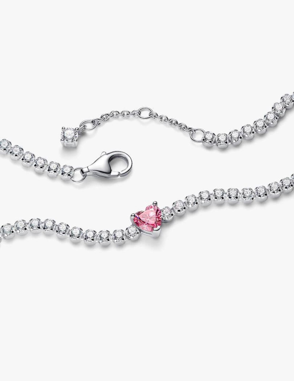 Pulsera Pandora de Tenis Corazón Brillante Rosa
