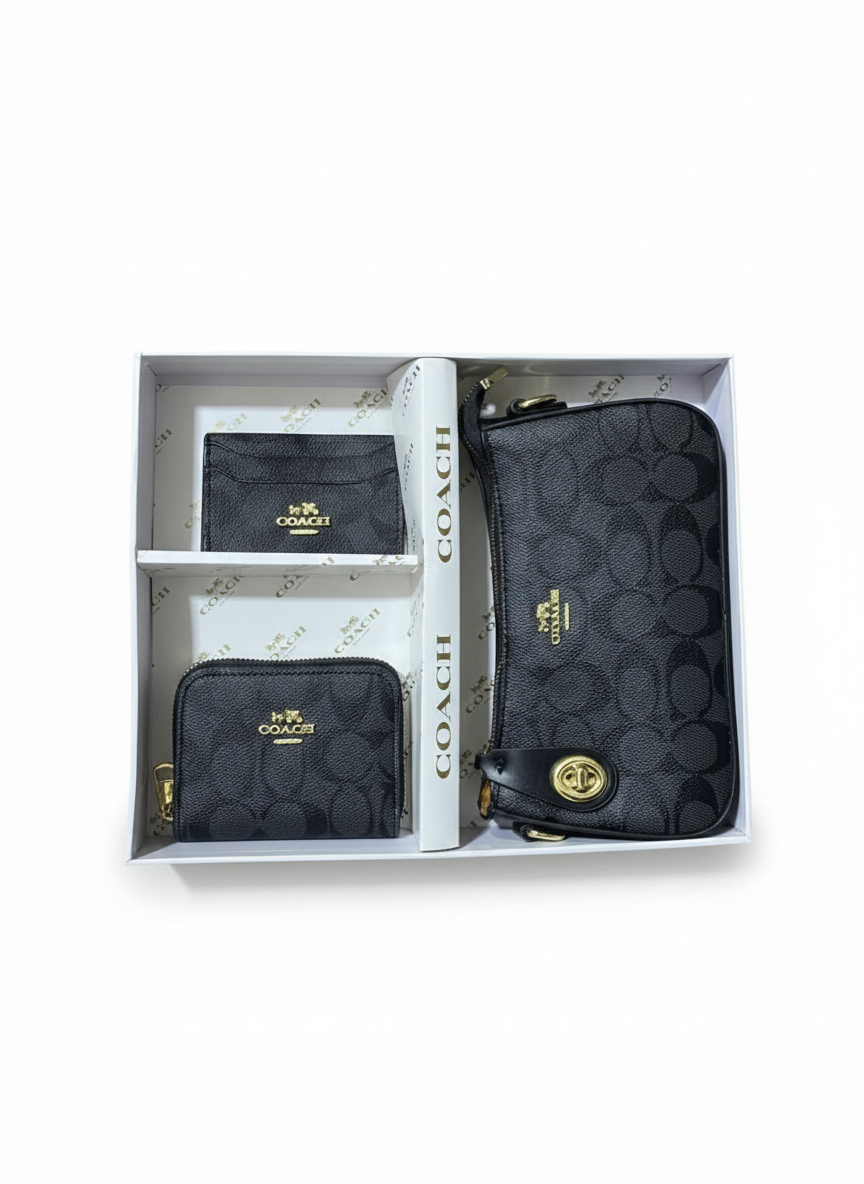 Set de Carteras Coach 3 Piezas Negro Con Logo